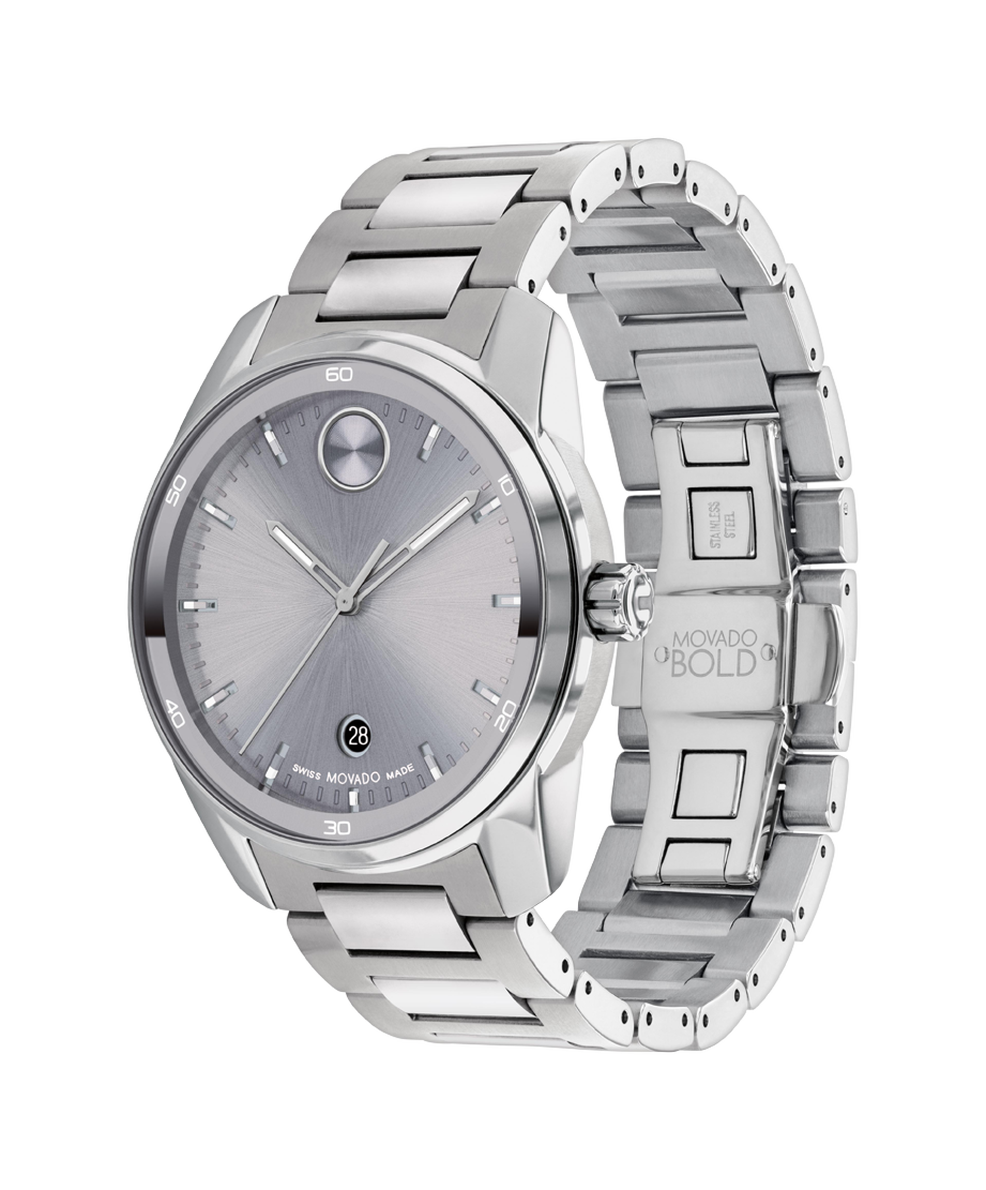 The Bold Verso is defined by a Bold, sport-inspired case and sophisticated detailing. This 42mm watch features a military grey dial, Swiss Super-LumiNova accents, and our signature dot at 12 o'clock.