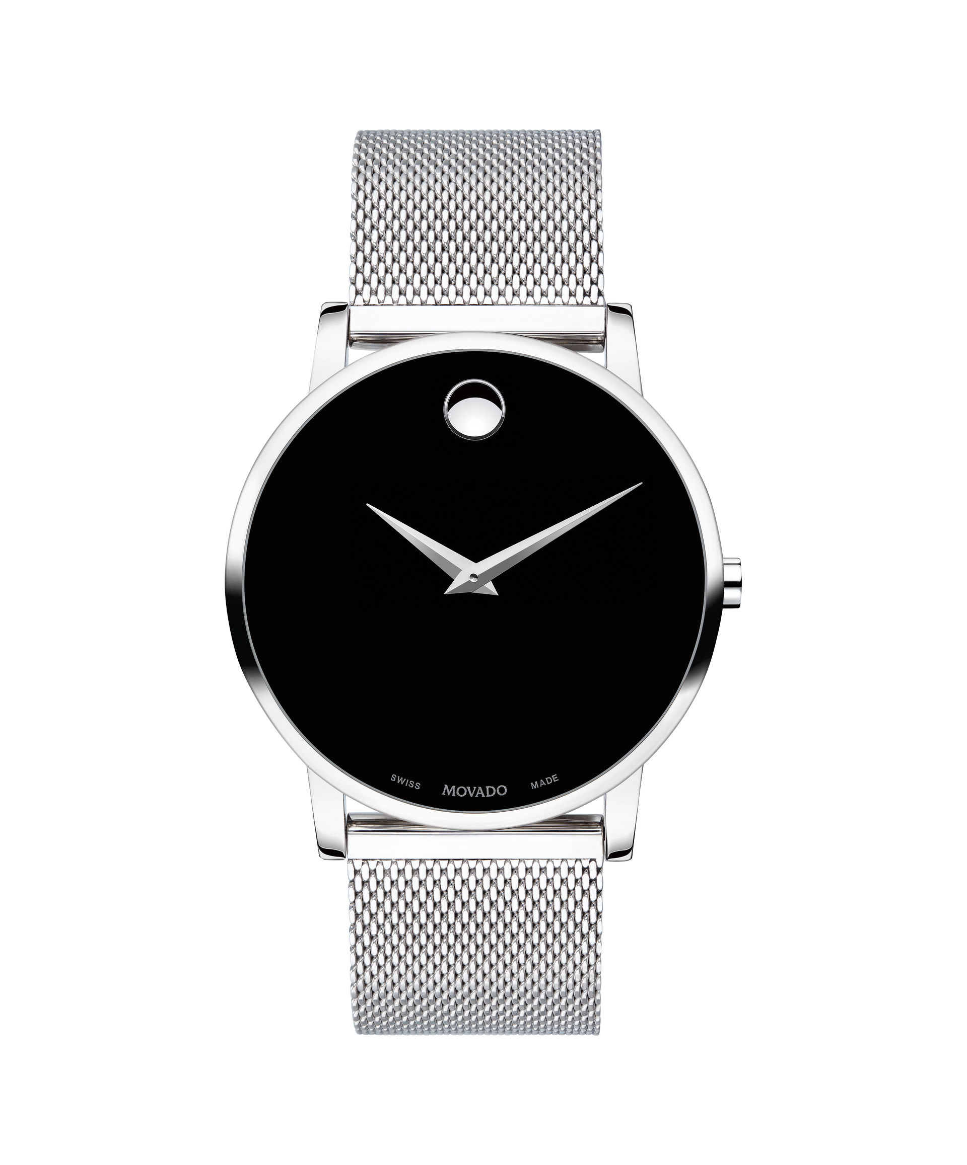 Men's Museum Classic watch, 40 mm stainless steel case, black Museum dial with silver-toned dot and hands, stainless steel mesh bracelet with sliding closure clasp.
