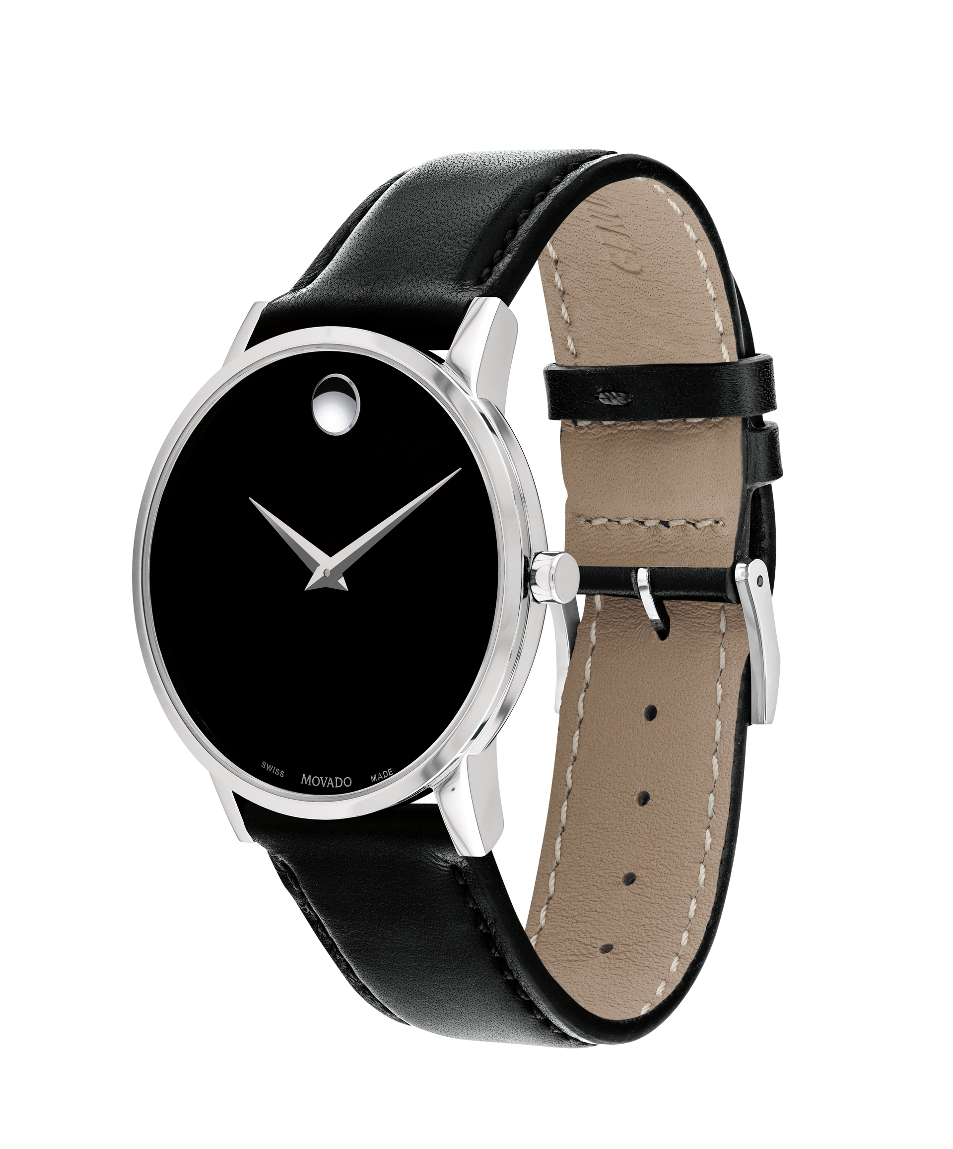 Men's Museum Classic watch, 40 mm stainless steel case, black Museum dial with silver-toned dot and hands, black calfskin strap with stainless steel buckle.