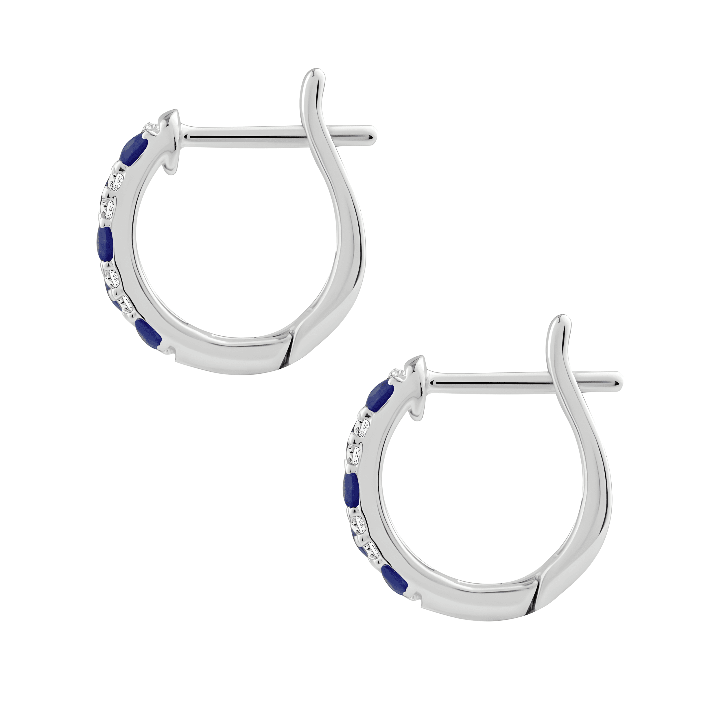 Tiny treasures that pack a punch! These charming huggie hoops feature lush .25ct in sapphires paired with sparkling .10ct round diamonds, all nestled in your choice of 18 karat white or yellow gold. Perfect for adding a pop of color and elegance to any moment—whether you're dressing up or keeping it casual.