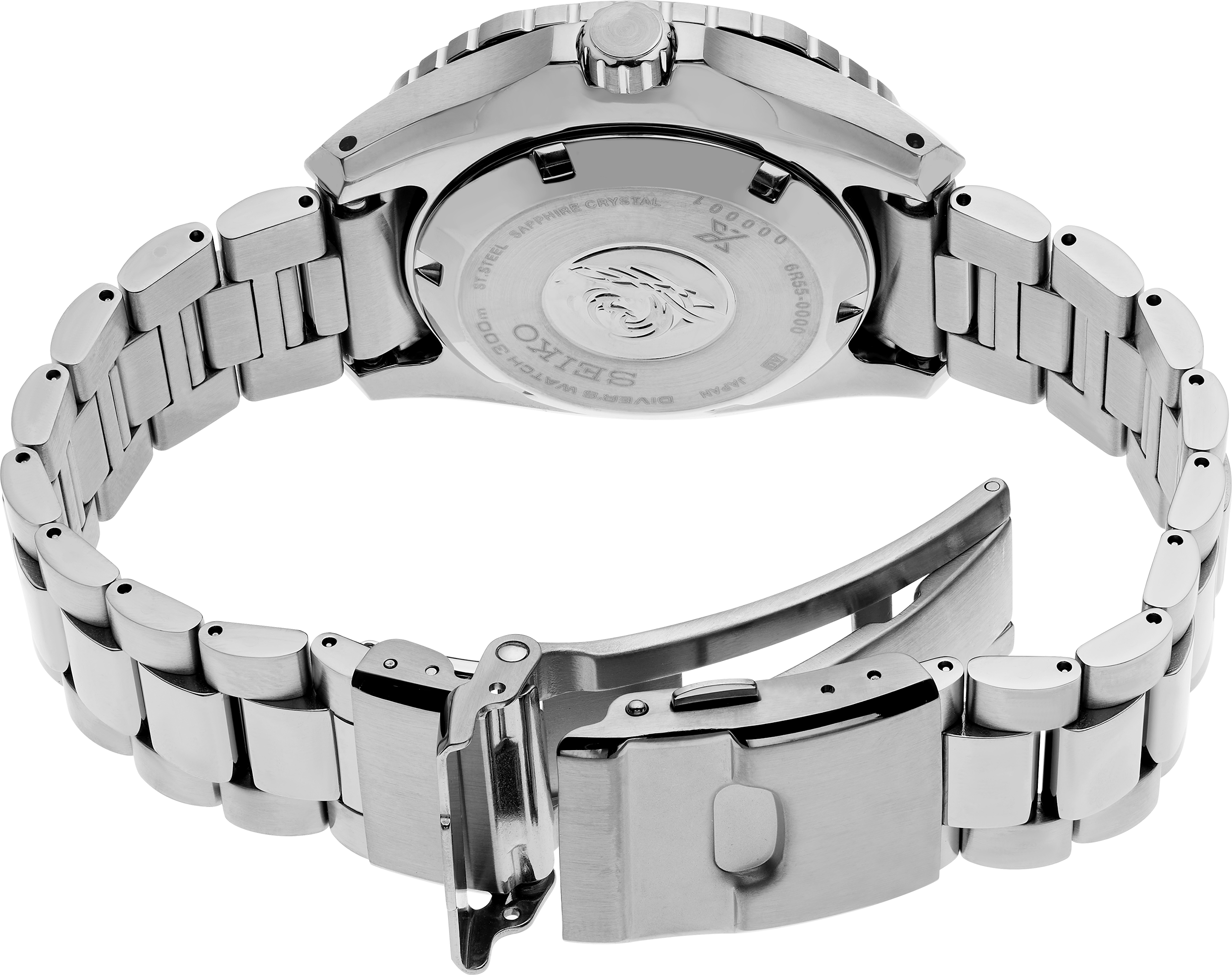 Prospex Automatic Diver’s Watch. Designed for those who treat life as the ultimate adventure, the Seiko Prospex collection meets every challenge with technological excellence and style, continuing the rich legacy of innovation in high-intensity timekeeping. Framed by a rose gold-tone polygonal uni-directional rotating elapsed timing bezel, suited for formal occasions while keeping an active and sporty impression, the warm gray pressed pattern dial, inspired by a calm coastline, offers a date calendar between 4 and 5 o’clock allowing for LumiBrite coating on the hands and all 12 markers, improving symmetry and legibility. With an upgraded power reserve of approximately 72 hours, 3 full days, the 24-jewel automatic movement beats at a frequency of 21,600 vibrations per hour and features manual winding capability. Crafted of stainless steel with super-hard coating, this superbly functional diver’s watch includes a sapphire crystal with anti-reflective coating on the inner surface, as well as a screwdown crown and caseback. The bracelet is designed with mirror polish center links to match the sophisticated case design, which follows ISO standards for scuba diving to depths of 300 meters while maintaining a slim profile. 300m Water Resistant