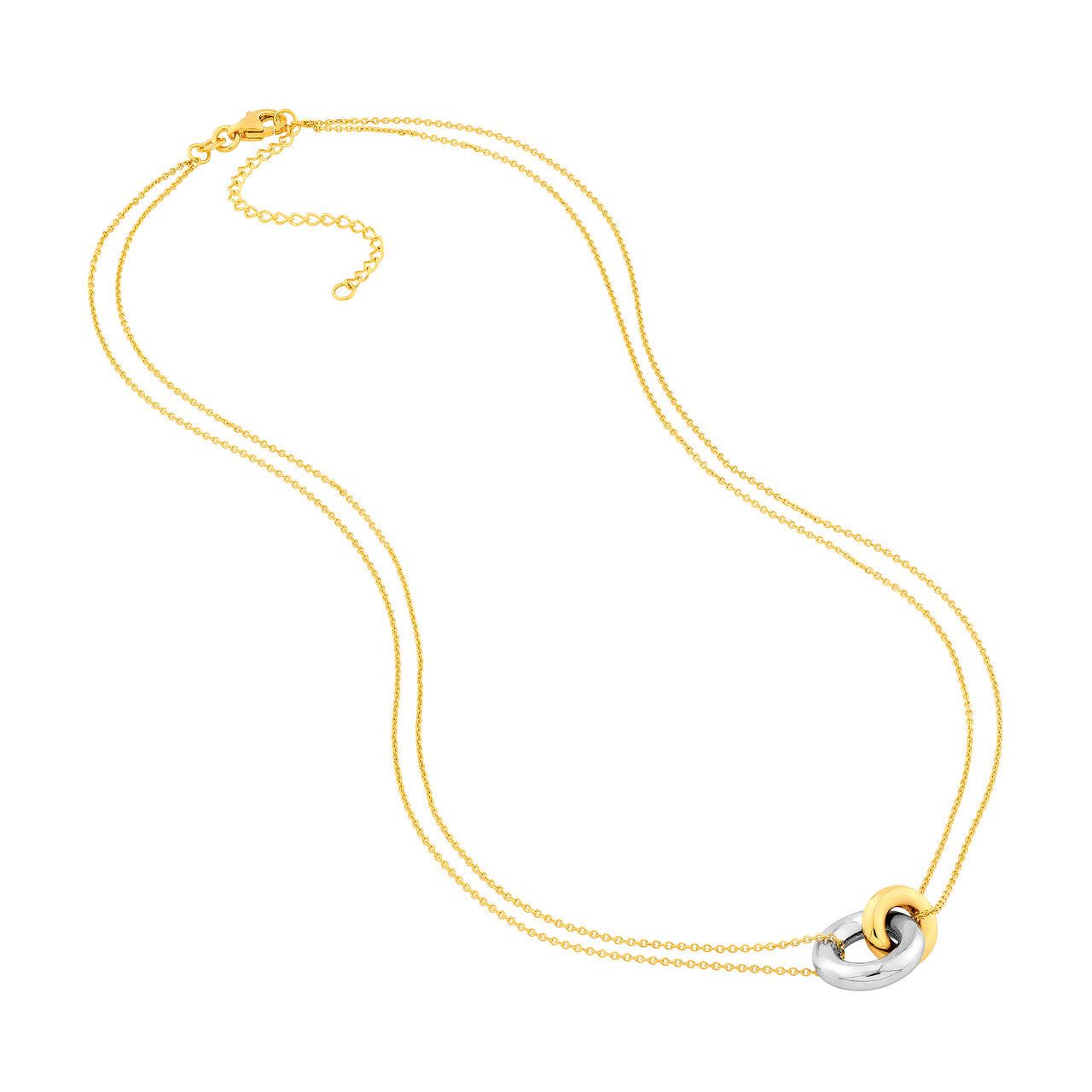 An elegant design with a bold statement. Wear this chic, two tone necklace crafted from 14K solid gold. It also features a 2-inch extender for a perfect fit.